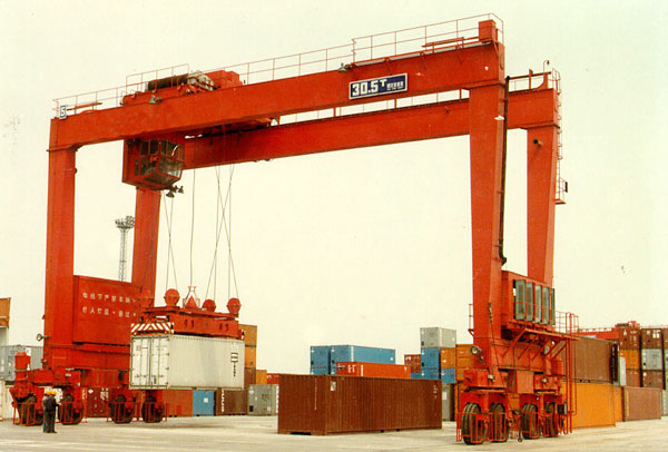 運到堆場或后方后,由集裝箱龍門起重機堆碼起來或直接裝車運走,可加快集裝箱運載橋或其他起重機的周轉。可堆放高3~4層、寬6排的集裝箱的堆場,一般用輪胎式,也有用有軌式的。集裝箱龍門起重機與集裝箱跨車相比,它的跨度和門架兩側的高度都較大。為適應港口碼頭的運輸需要,這種起重機的工作級別較高。起升速度為8~10米/分;跨度根據(jù)需要跨越的集裝箱排數(shù)來決定,*大為60米左右相應于20英尺、30英尺、40英尺長集裝箱的起重量分別約為20噸、25噸和30噸。